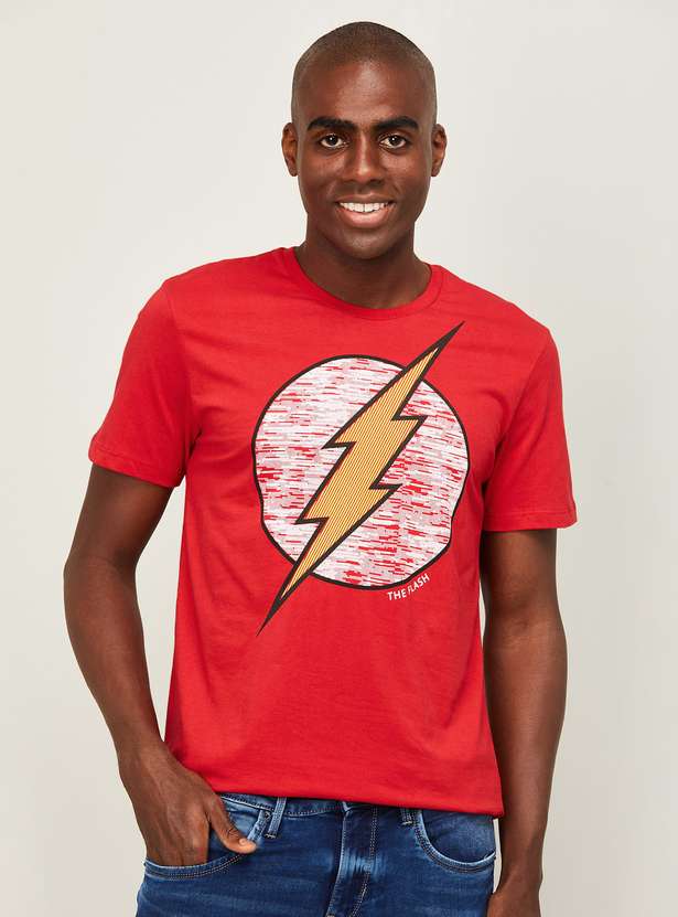You are in for a treat with this printed T-shirt. It is tailored with raglan sleeves and a crew neck. Only for INR 500