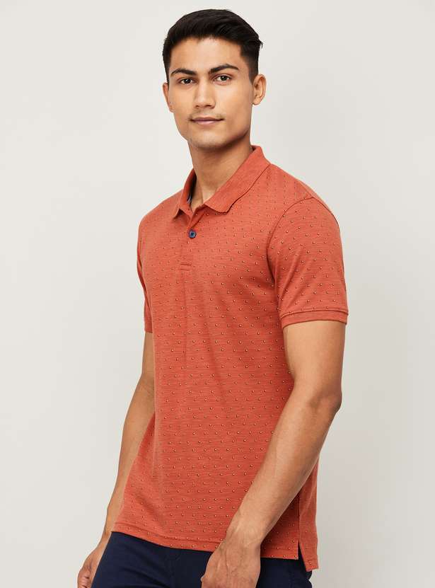 Add vibrancy to your casual wardrobe with this T-shirt featuring a polo neck, short sleeves and a straight hemline. Only for INR 500 !